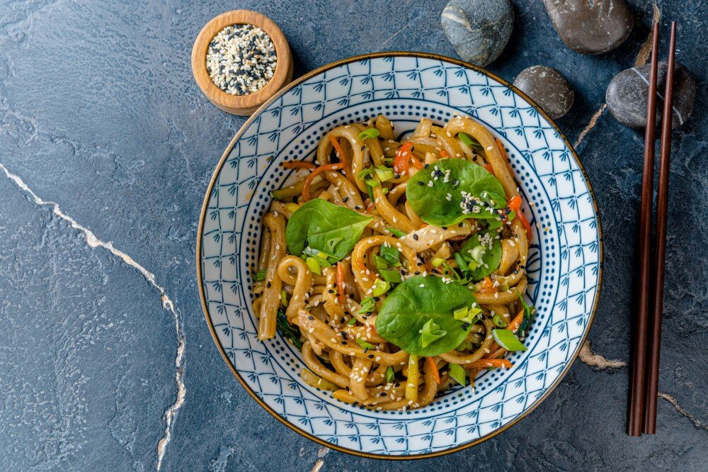 Состав: Кальмар, лук, морковь, перец болгарский, масло растительное, кунжут, лук зеленый, шпинат бэйби, соус устричный, цуккини, лапша удон.