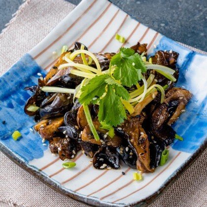 Салат из моркови по-корейски. Состав: Морковь, лук, перец черный, перец красный молотый, перец чили, чеснок, соевый соус, кориандр.