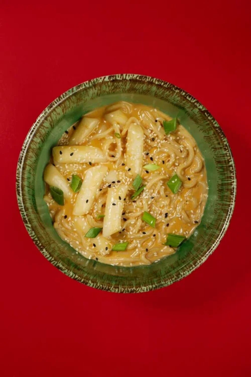 Откройте для себя гармонию азиатских вкусов с нашим новым блюдом — Ропокки Том Ям! Это невероятное сочетание рисовых палочек и лапши, объединенных в насыщенном бульоне с ароматной пастой Том Ям. Плавленый сыр добавляет блюду нежную кремовую текстуру, создавая идеальный контраст с ярким, пряным вкусом Том Ям. Состав: Рисовые палочки, лапша, сыр плавленный ломтевой, лук зеленый, кунжут, паста том ям.