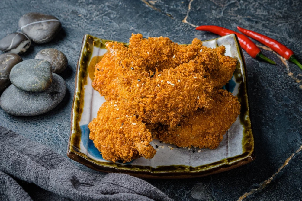 Жареные куриные крылья в панировке и соусе на выбор: медовый, яннём (красный острый), сырный монстр, фрай (без соуса).