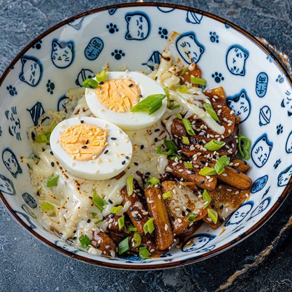 Нежные рисовые палочки с хрустящими овощами под соусом Чачжан
