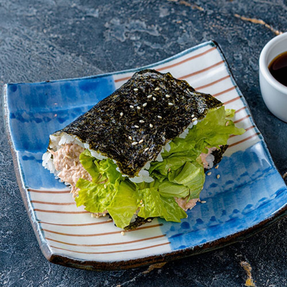 Рисовые треугольники с начинкой из консервированного тунца и листового салата