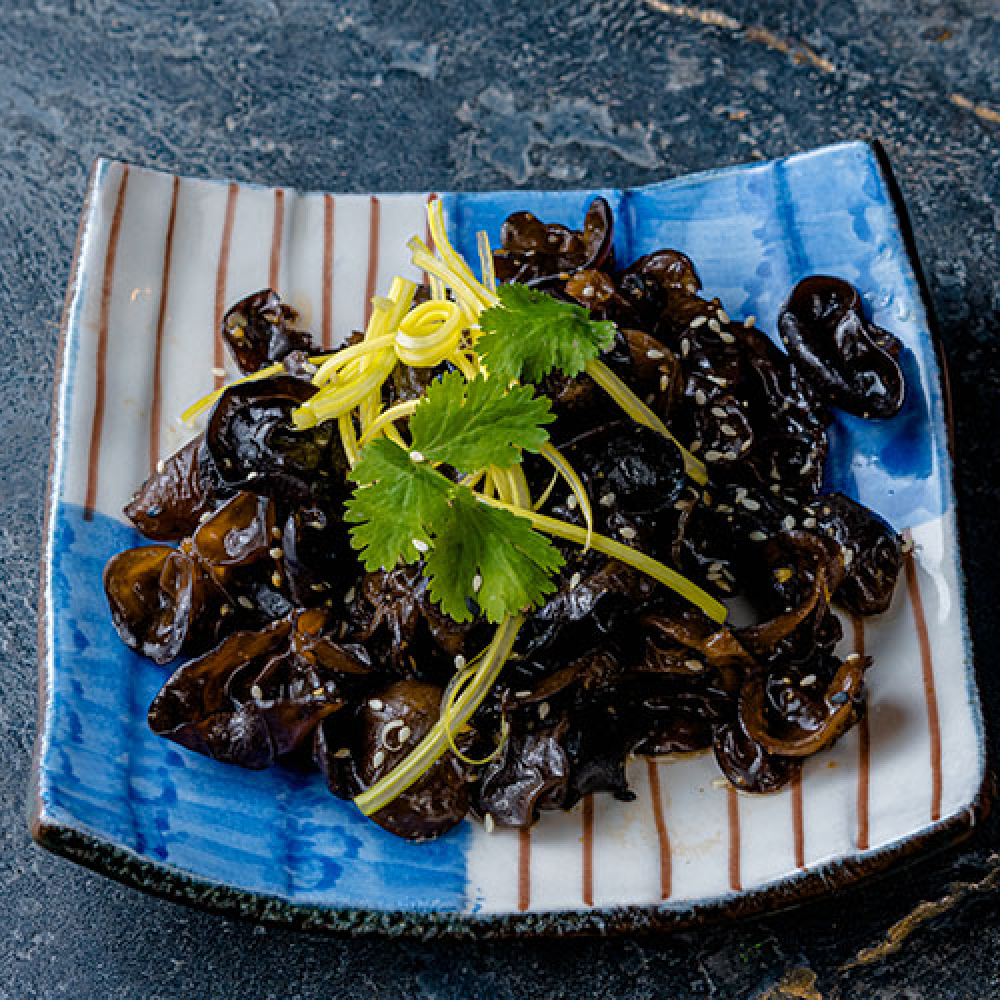 Горячие древесные грибы муэр, обжаренные в соевом соусе и кунжутном масле