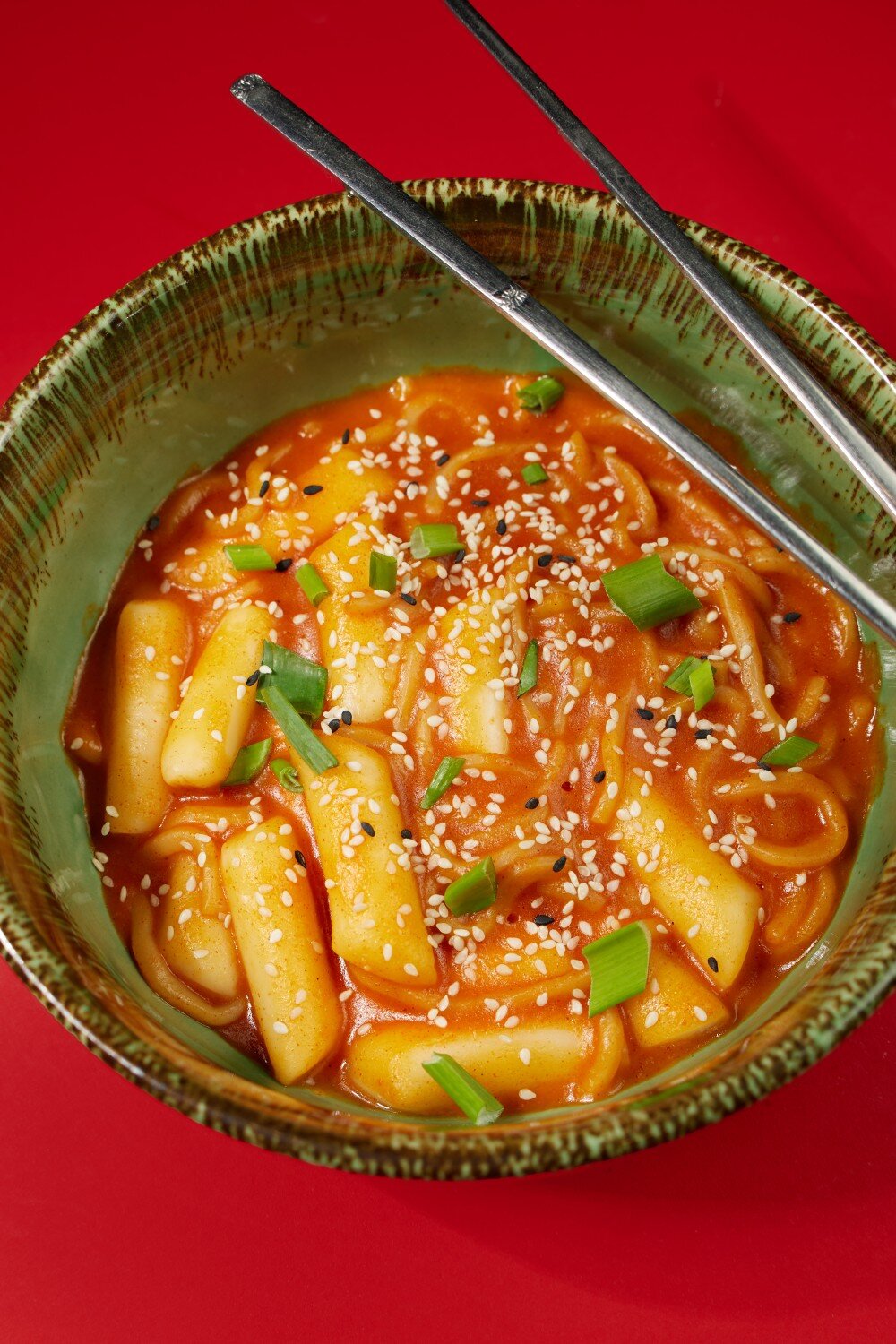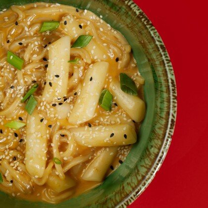 Погрузитесь в яркий вкусовой взрыв с нашим фирменным блюдом — Рапокки Острый! Это уникальное сочетание нежных рисовых палочек и ароматной лапши, которые идеально гармонируют с насыщенной пастой и пикантным кочудян. Добавление плавленого сыра придает блюду кремовую текстуру, а обжаренный лук — тонкую сладость и хруст. Состав: Рисовые палочки, лапша, сыр плавленный ломтевой, лук зеленый, кунжут, соус красный как на токпокки классические: говяжий бульон, сахар, соевая паста кочудян.