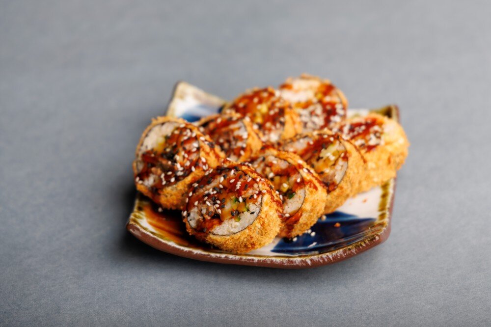 Хрустящий ролл с золотистой корочкой: нежная копченая курочка, сладкий анана, пикантный кимчи и сливочный сыр под острым соусом спайси. Состав: рис, лист нори, копченая курица, ананас, кимчи салат, такуан, сыр креметте, соус спайси
