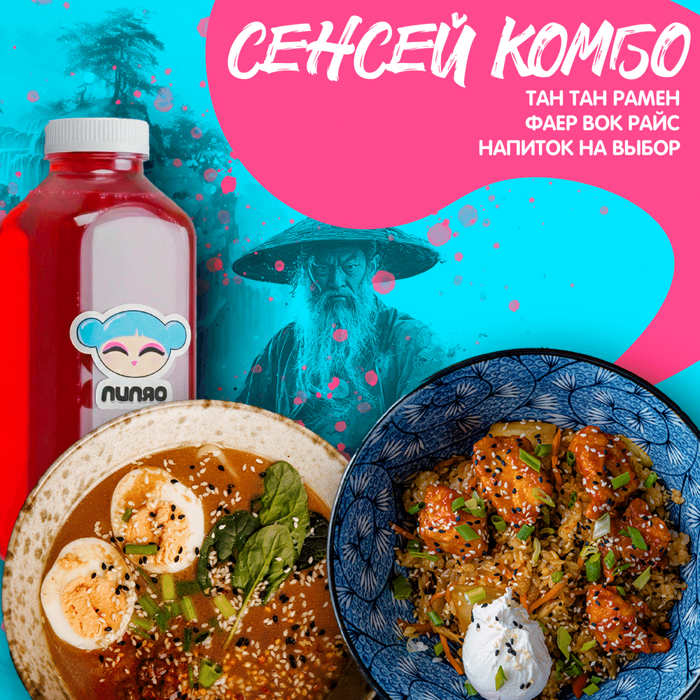 Комбо для тех, кто познал дзен и ищет ярких ощущений. Насыщенный вкус Тан Тан Рамена в сочетании с огненным рисом — это настоящий экзамен для ваших рецепторов. Состав: Тан Тан Рамен + Фаер Вок Райс + Напиток.